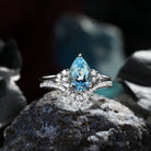 Aquamarine Engagement Ring Pear Shaped Bridal Set 2pcs Cluster Wedding Ring Unique Galaxy Natural Anniversary Ring