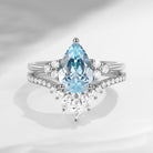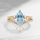 Pear Cut Natural Aquamarine Cluster Engagement Ring Set 2pcs - Vivian