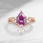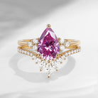 Pear Cut Pink Moissanite Cluster Engagement Ring Set 2pcs - Vivian