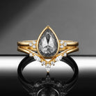 Pear Cut Salt and Pepper Diamond Bezel Classic Cluster Engagement Ring Set 2pcs Gold Bridal Set 2cps Cluster Wedding Ring Anniversary Ring