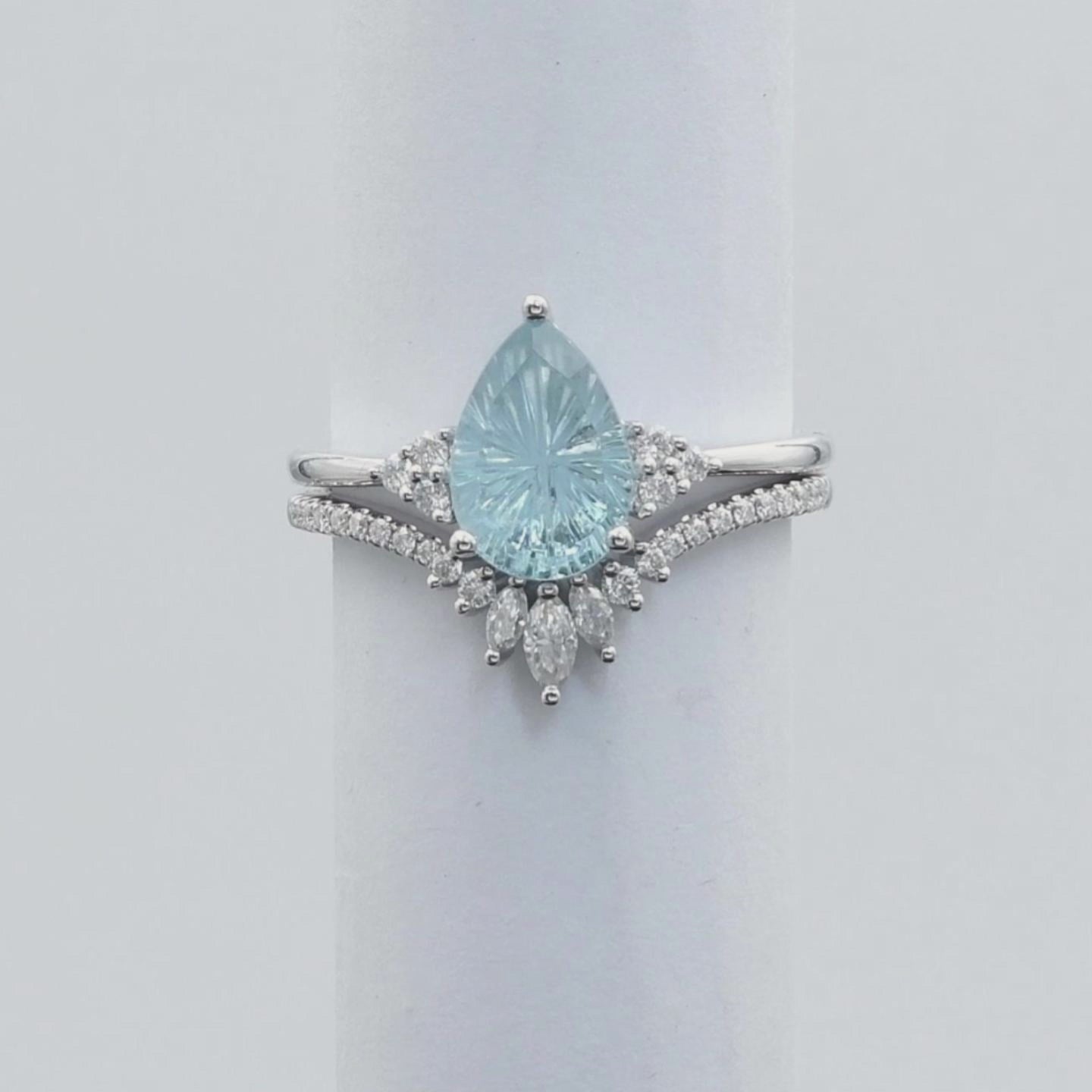 Pear Fantasy Carved Natural Aquamarine Cluster Engagement Ring Set 2pcs - Vivian