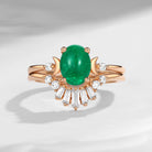 Pure Moon | Fancy Oval Cut Natural Emerald Engagement Ring Set 2pcs