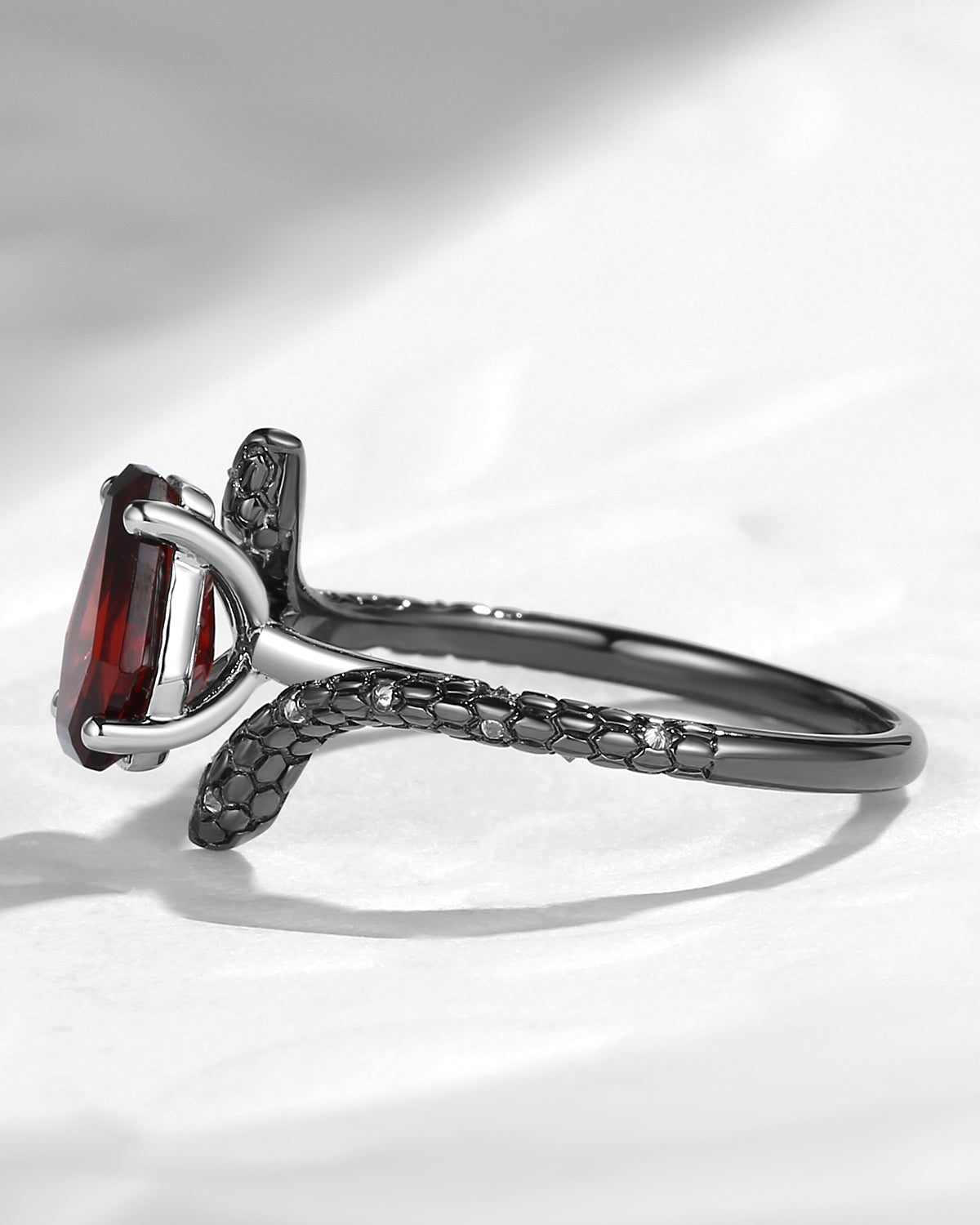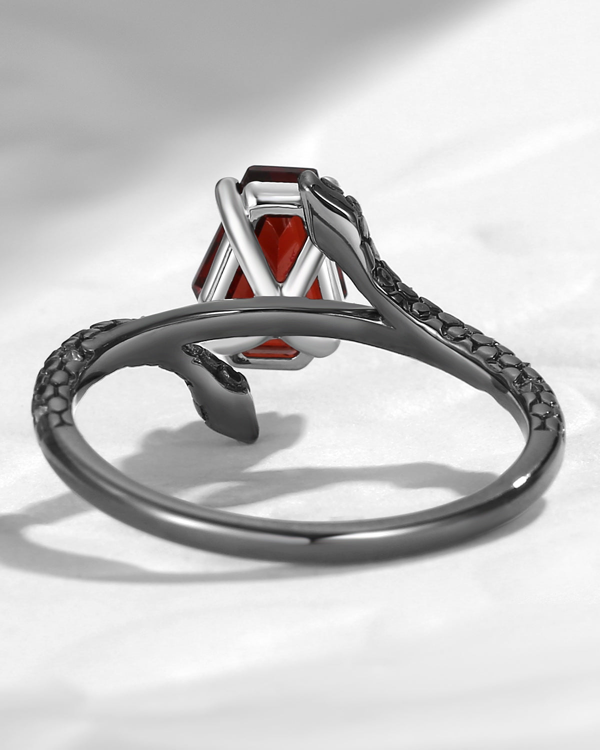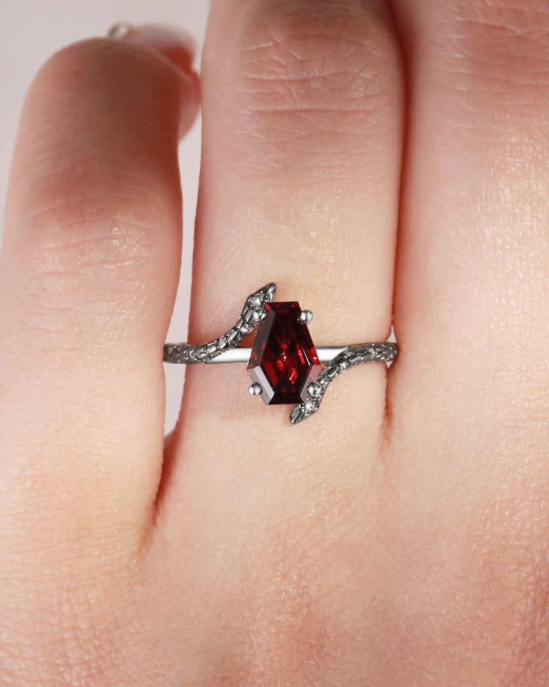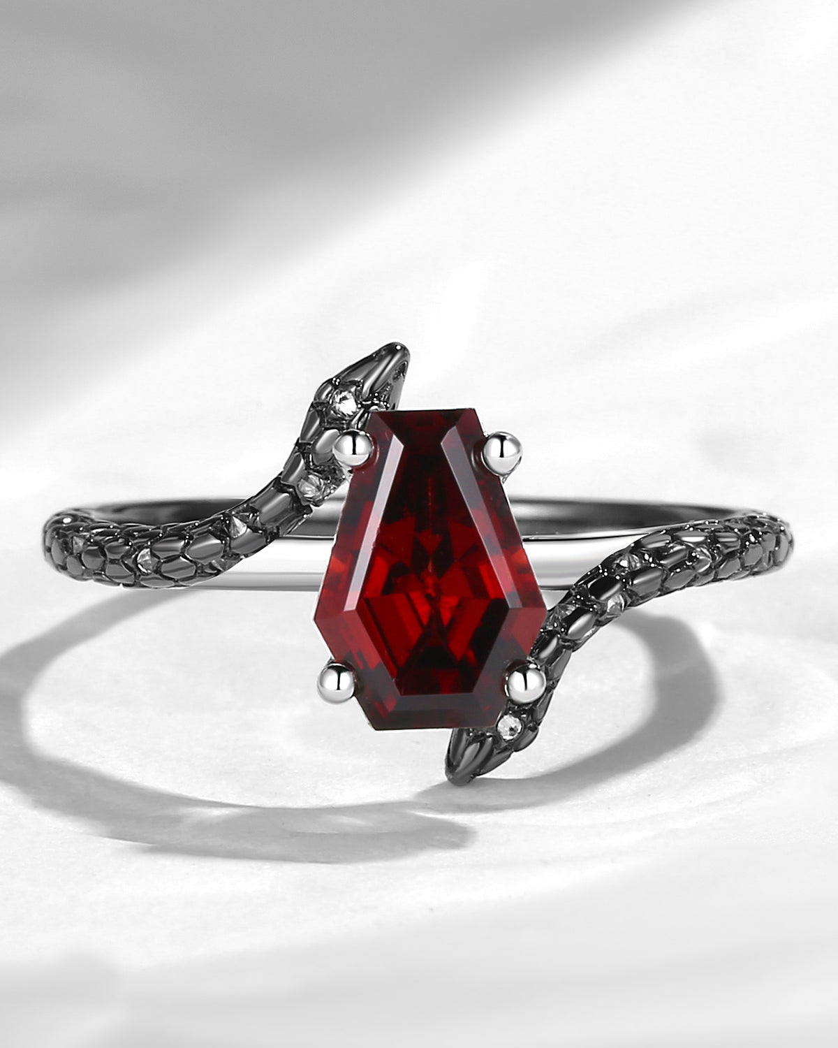 Retro Coffin Cut Garnet & Natural Ruby Vampire Gothic Engagement Ring Set 2pcs
