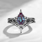 Unique Engagement Ring White Gold Bridal Set 2pcs coffin cut lab alexandrite bridal Cluster Ring One of a kind Marquise wedding band Gift
