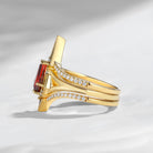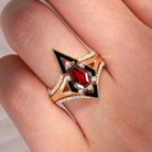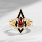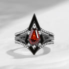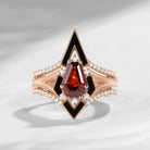 Unique Coffin Kite Cut Garnet Onyx Engagement Ring Set 3pcs