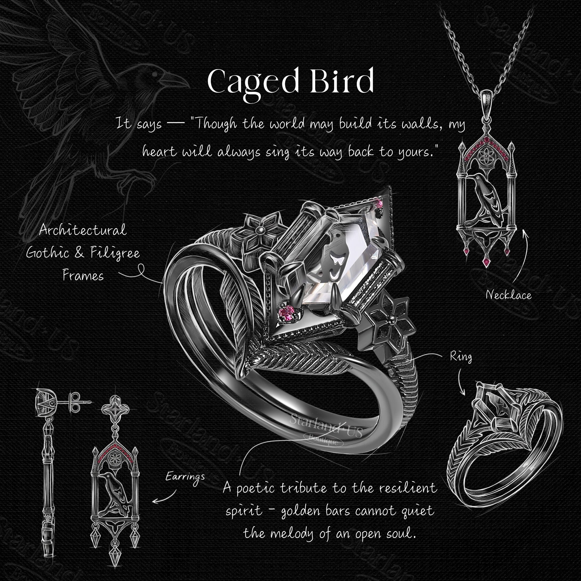 Unique Gothic Style Black Crow Inspired 'Caged Bird' Moissanite Earrings Halloween Jewelry Gift