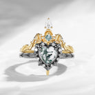 Unique Heart Shaped Garnet Sword Ring Bridal Set 2pcs - Cupid's Arrow