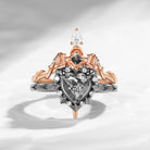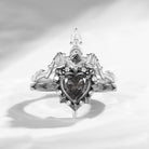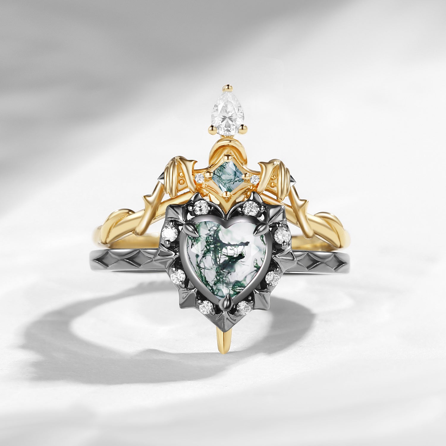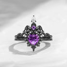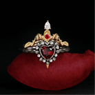 Unique Heart Shaped Garnet Sword Ring Bridal Set 2pcs Cupid's Arrow Valentine's Day Gift