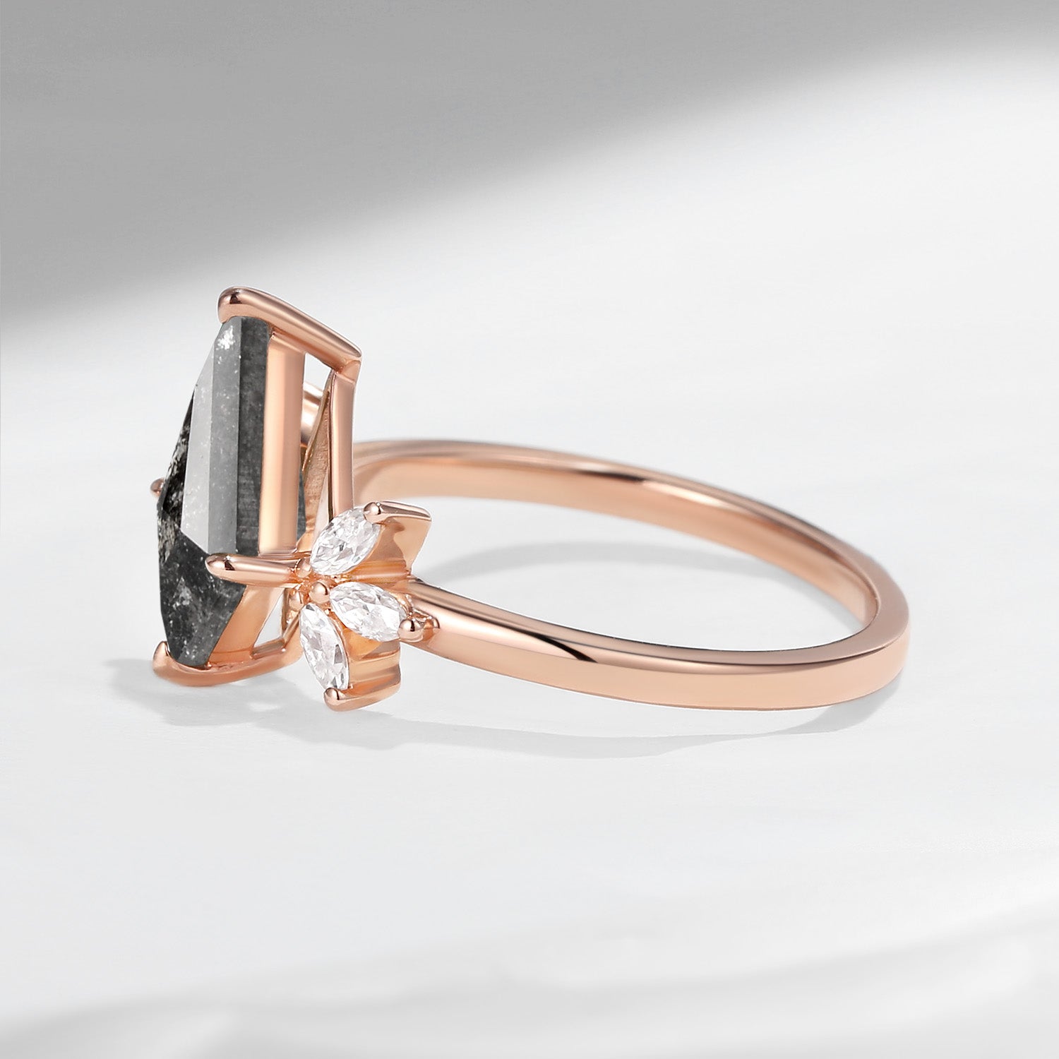 ⟢ Center Stone: Kite Cut Natural Salt And Pepper Diamond, 7*11mm