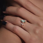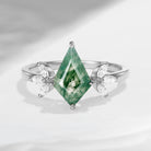 Unique Kite Shaped Moss Agate Butterfly Engagement Ring