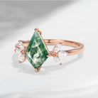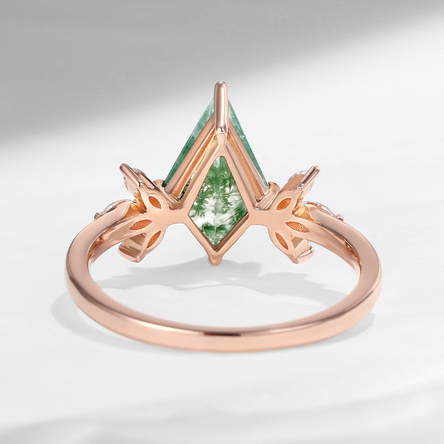 Kite Shaped Moss Agate Engagement Ring Rose Gold Kite Engagement Ring Green Agate Unique Art Deco Flower Gift