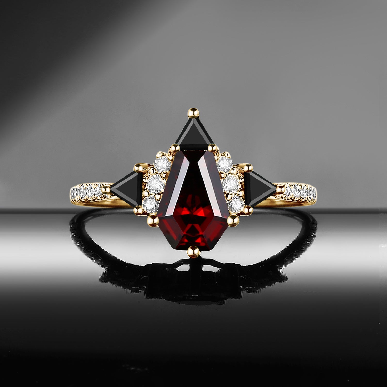 ⟢ Center Stone: Coffin Shaped Garnet, about 6*8mm