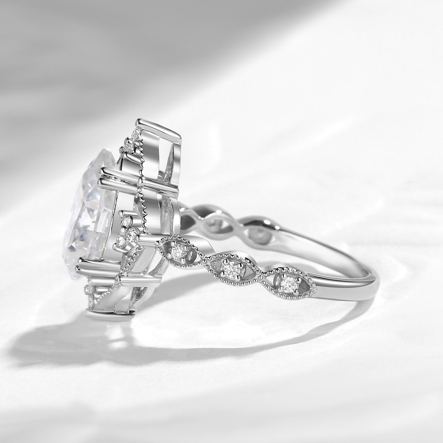 Vintage 1.5ct Pear Shaped Moissanite Engagement Ring Antique Flower Pear Halo Ring