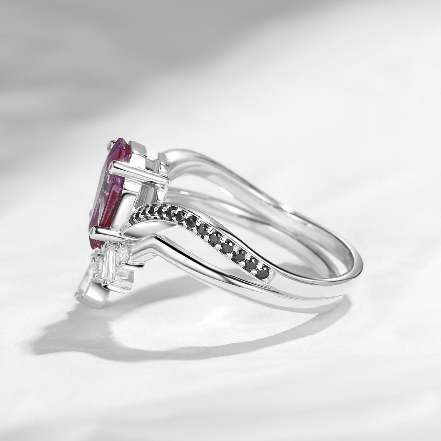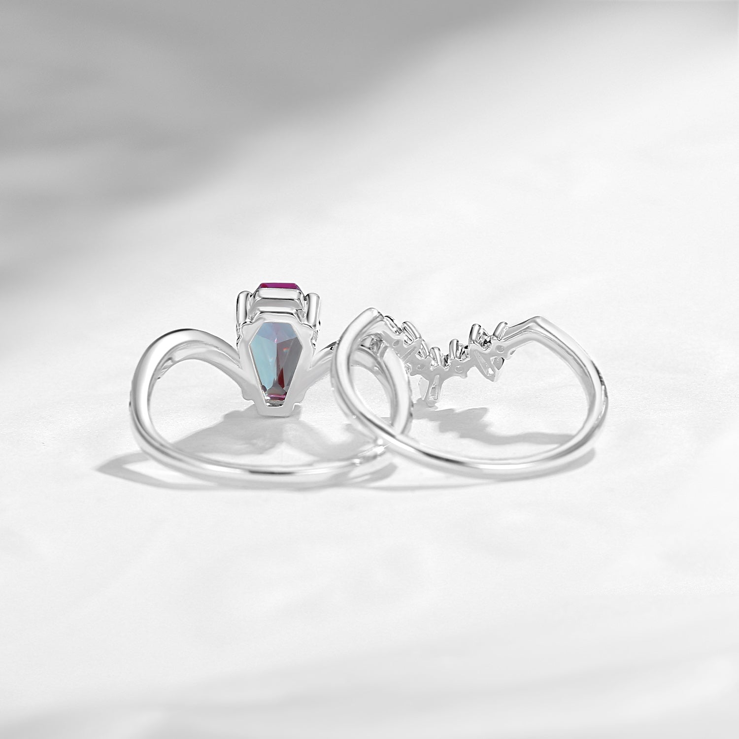 Vintage Coffin Cut Lab Alexandrite Curved Bridal Set 2pcs - Bat Cosmos
