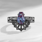 Vintage Filigree Coffin Spider Web Lab Alexandrite Engagement Ring Set 2pcs Spooky Spider Net Gothic Ring Gift