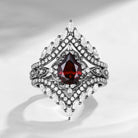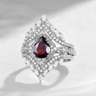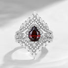 Vintage Pear Cut Garnet Engagement Ring Cage Ring Set 2pcs