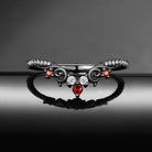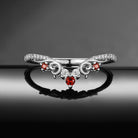 Vintage Inspired Gothic Art Deco Moissanite & Garnet Curved Wedding Band