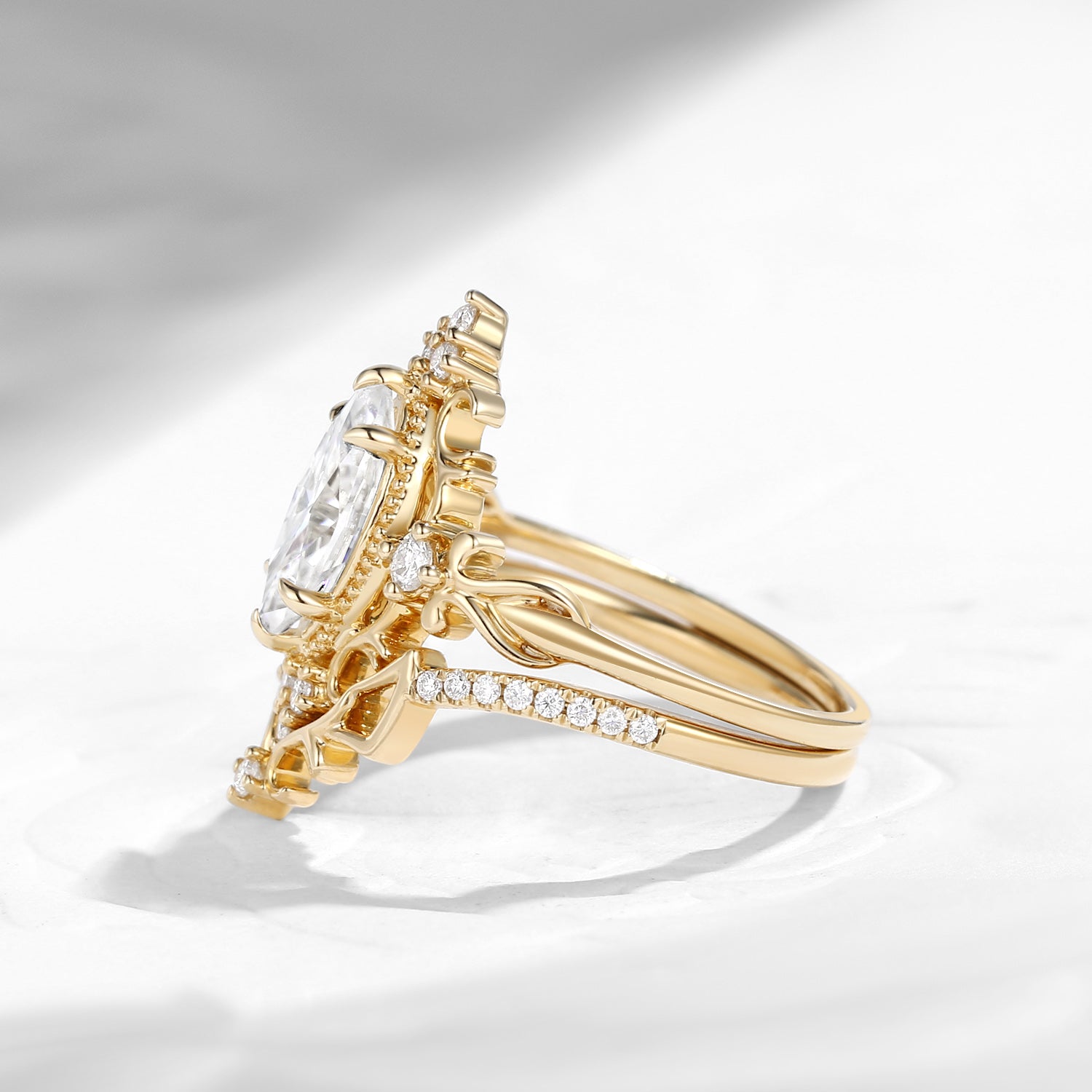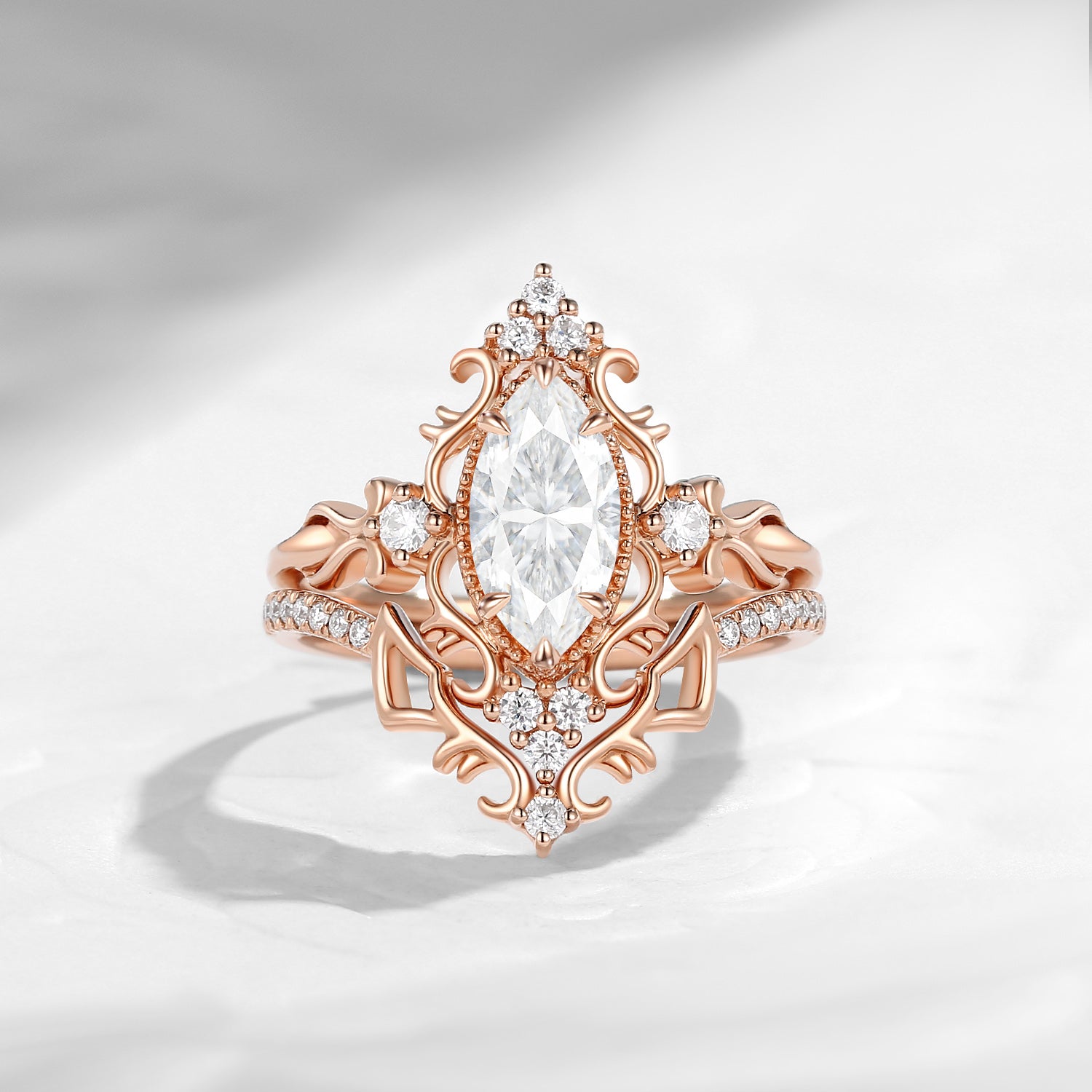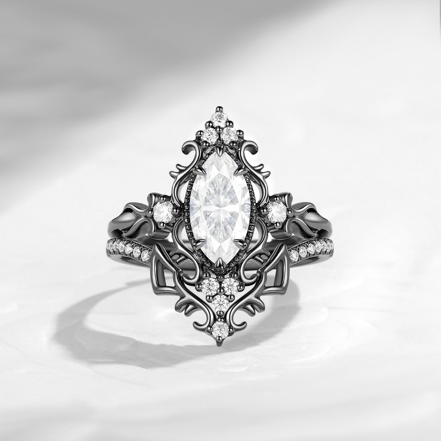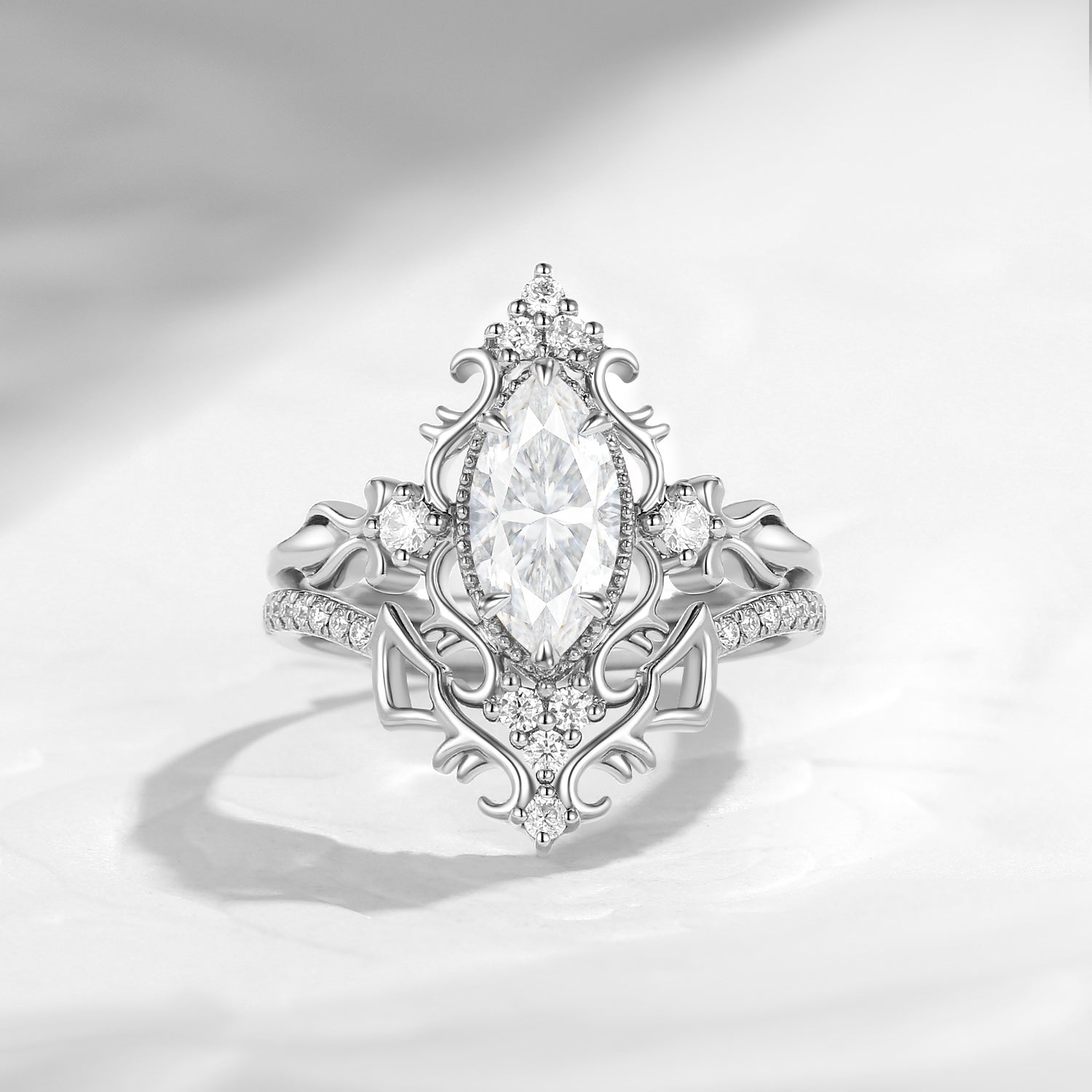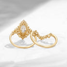 Vintage Inspired Marquise Cut Moissanite Unique Cluster Engagement Ring Bridal Set 2pcs