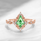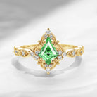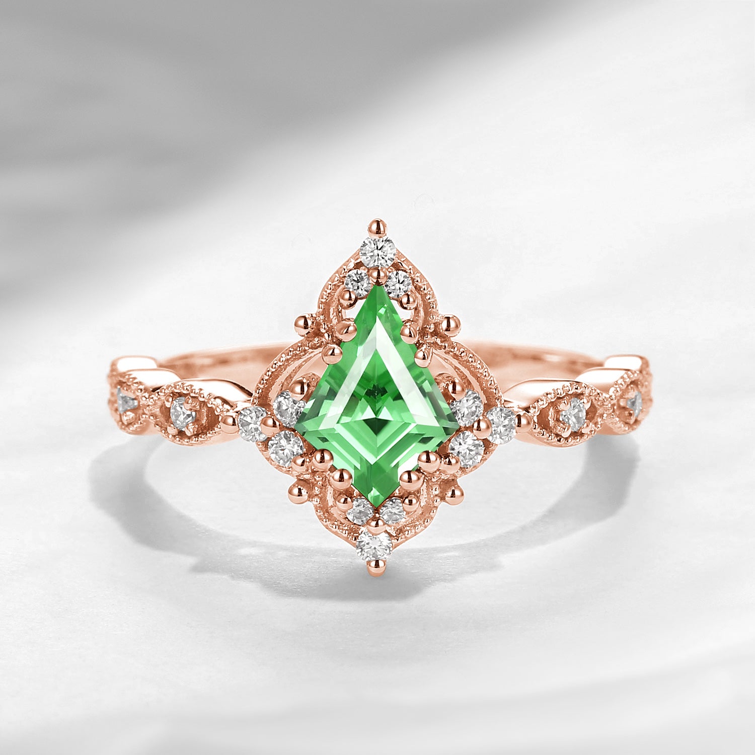 Vintage Inspired Milgrain Kite Cut Lab Tsavorite Antique Engagement Ring