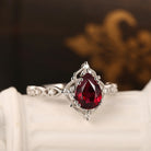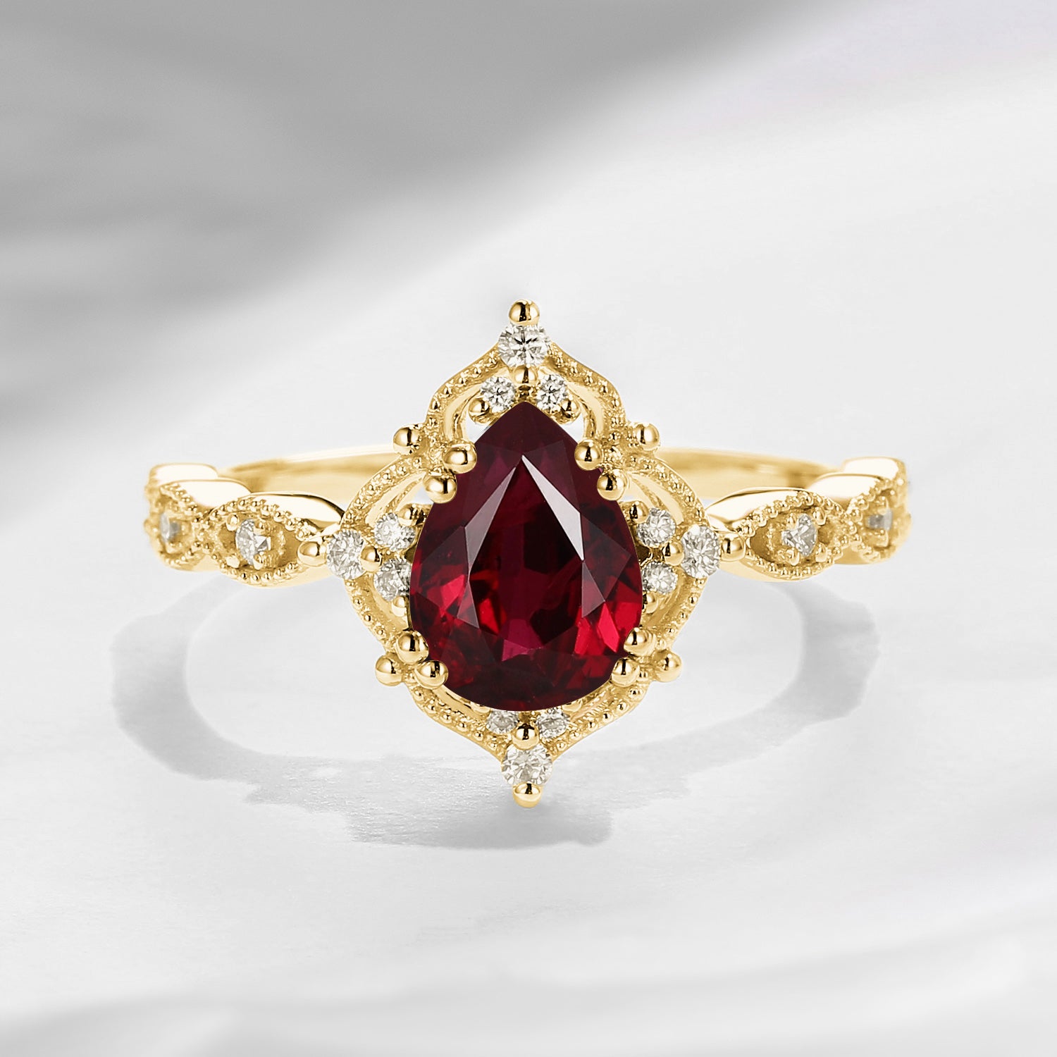 Vintage Inspired Pear Cut Natural Ruby Engagement Ring