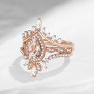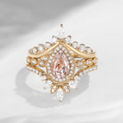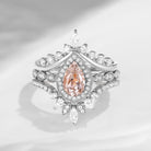 Vintage Inspired Pear Shaped Milgrain Morganite Engagement Ring Set 3pcs - Diva