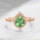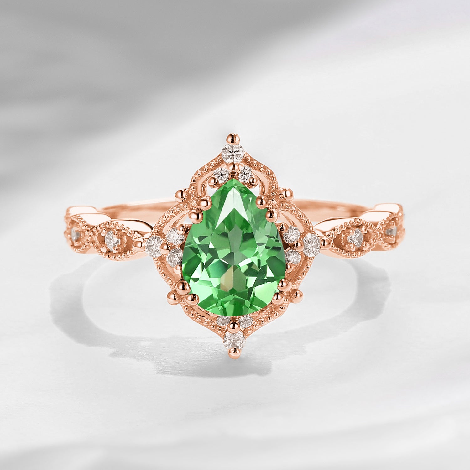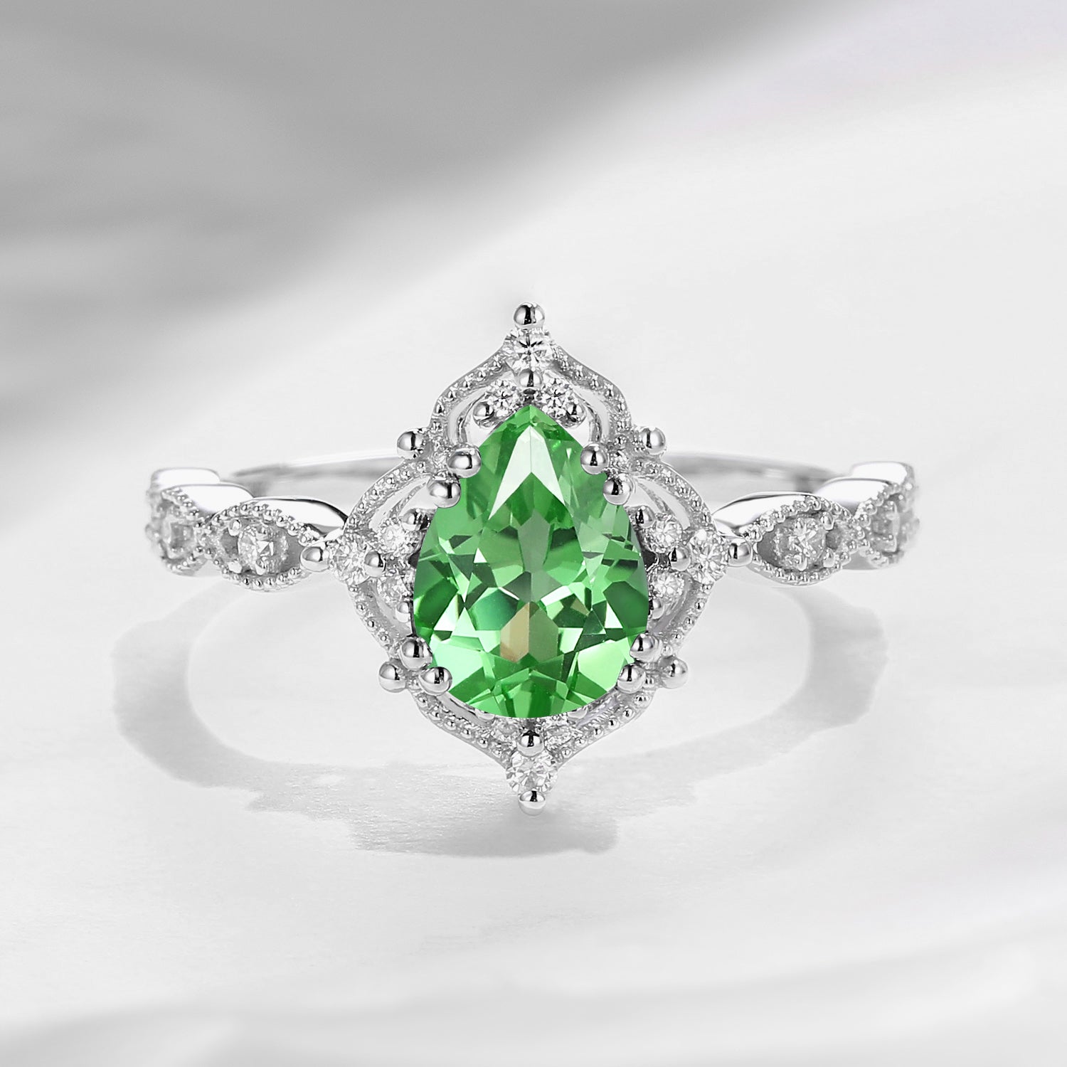 Vintage Pear Cut Lab Tsavorite Classic Milgrain Engagement Ring