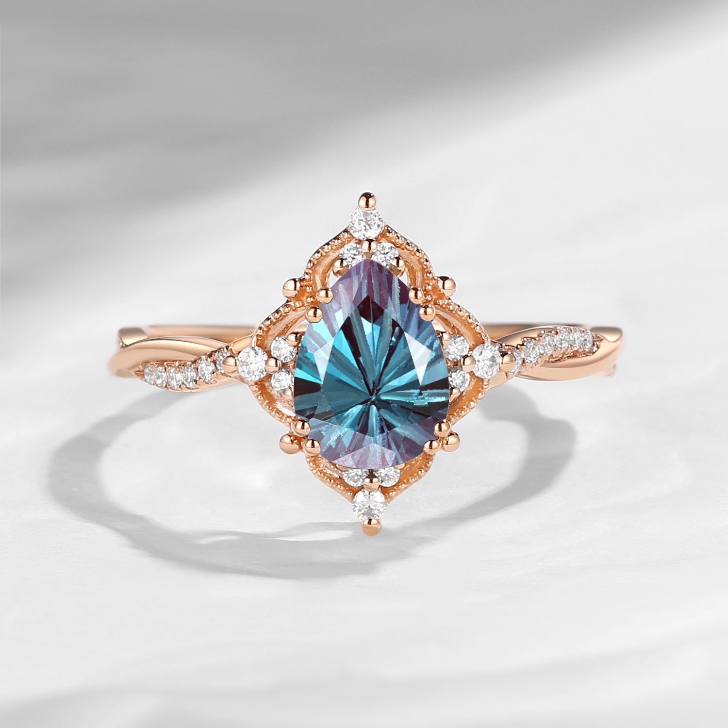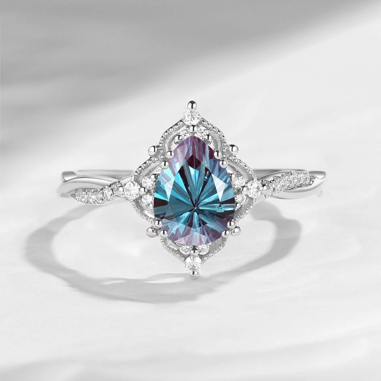 Vintage Style Firework Cut Pear Shaped Lab Alexandrite Infinity Engagement Ring