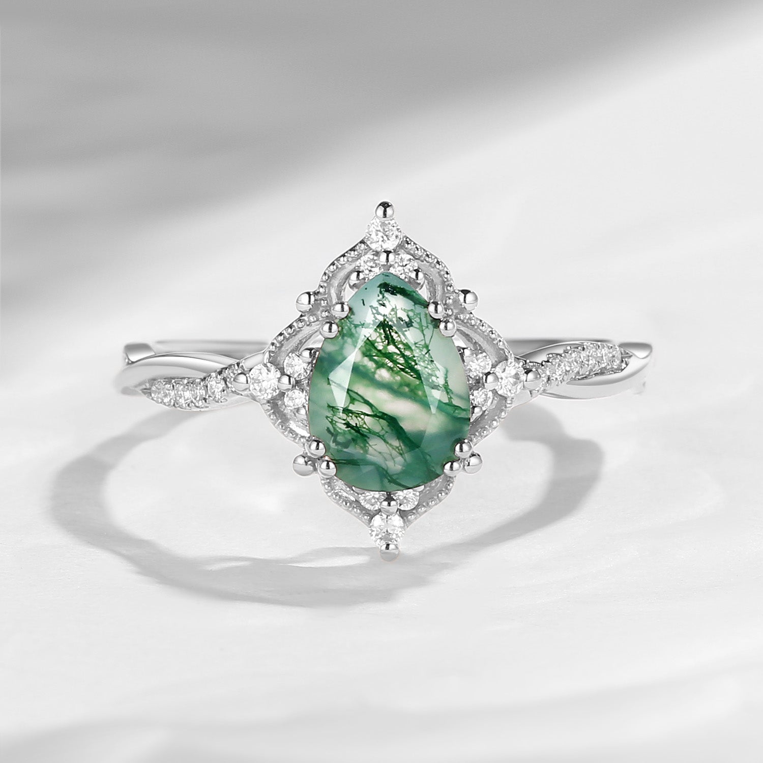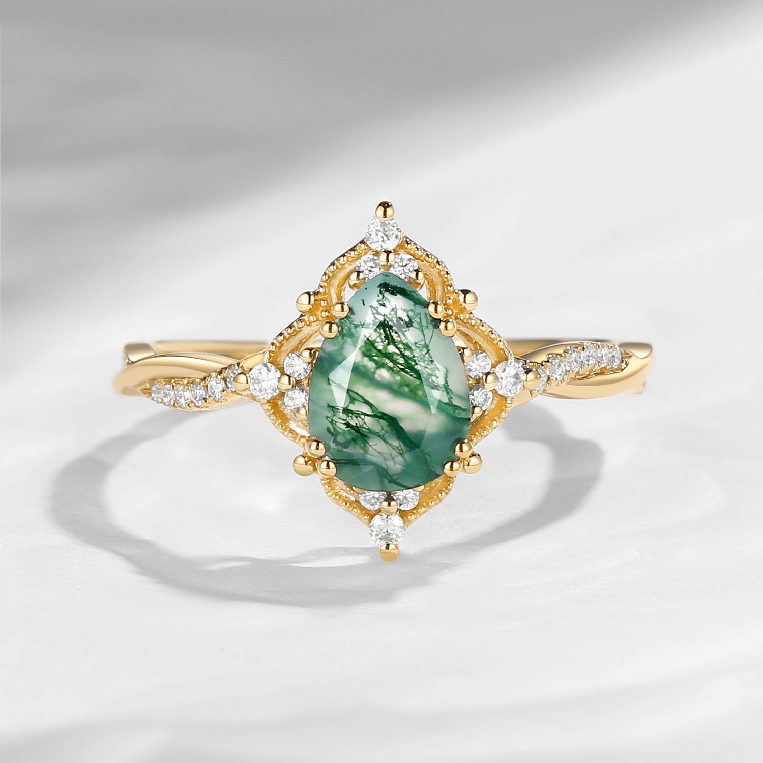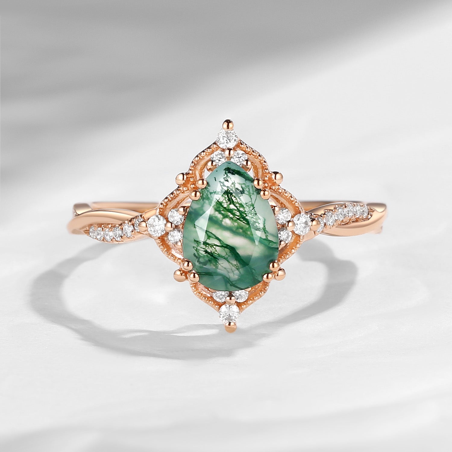 Vintage Style Pear Cut Moss Agate Infinity Engagement Ring