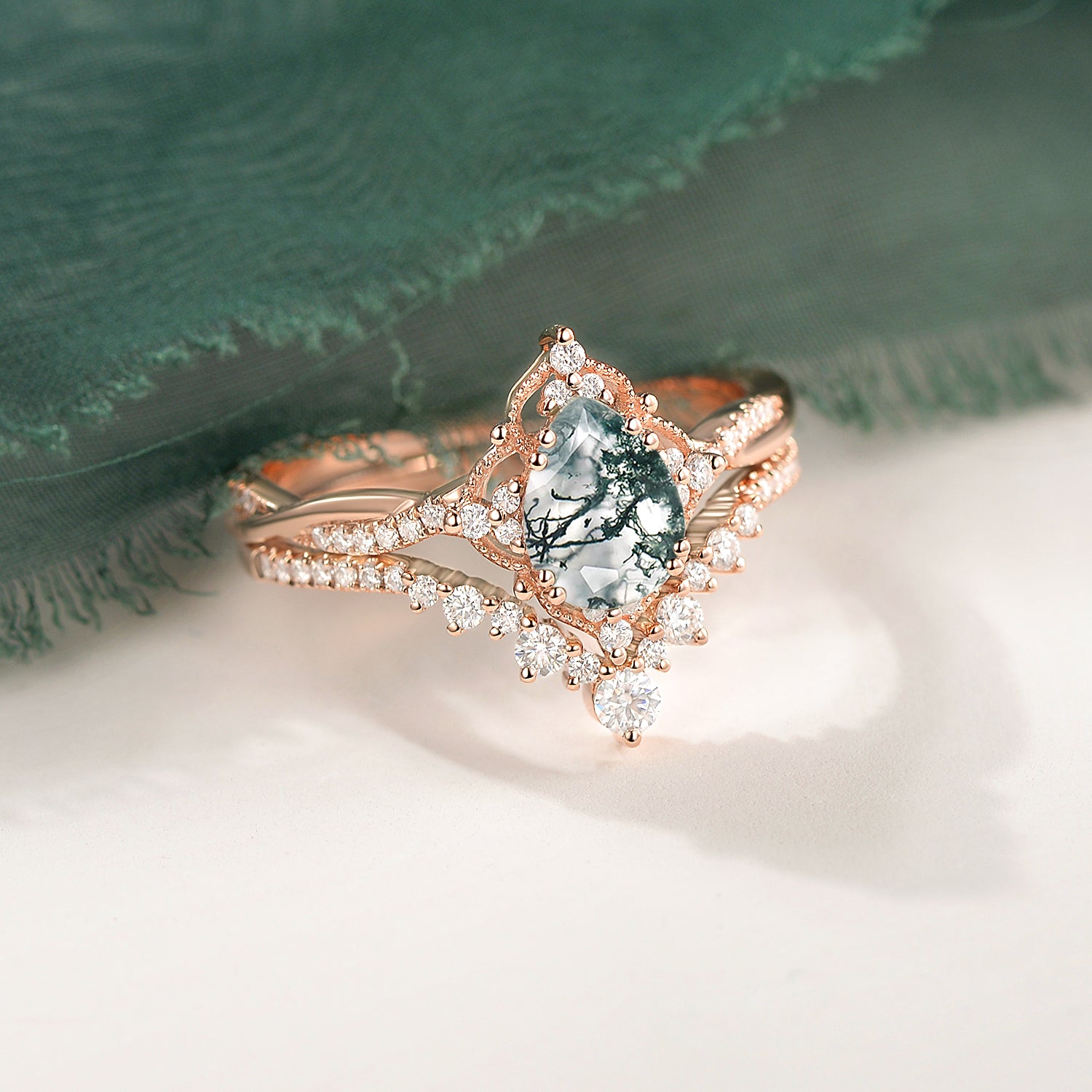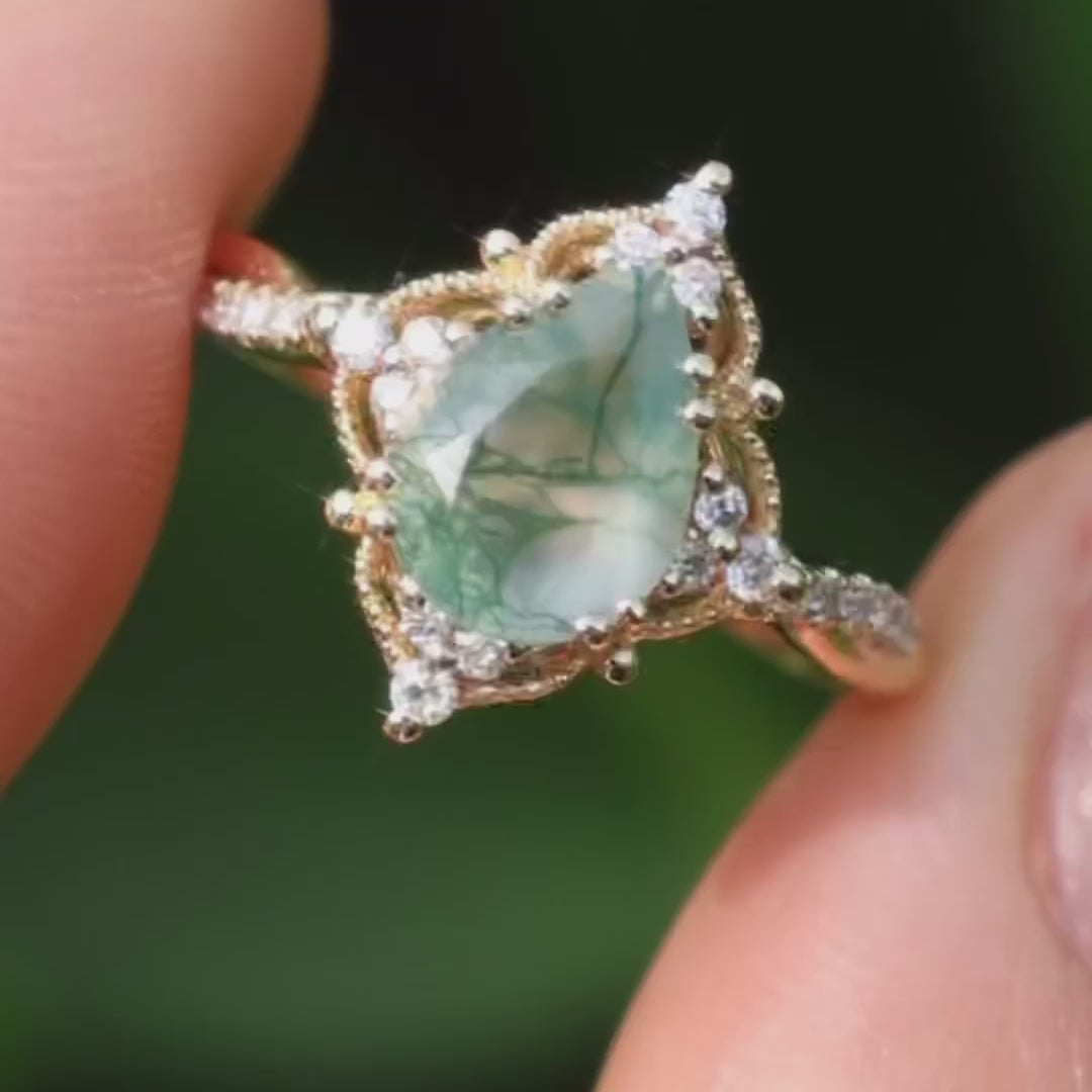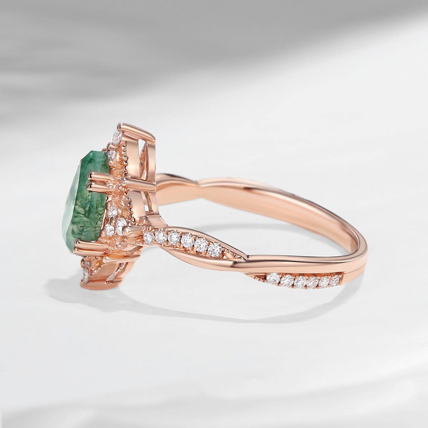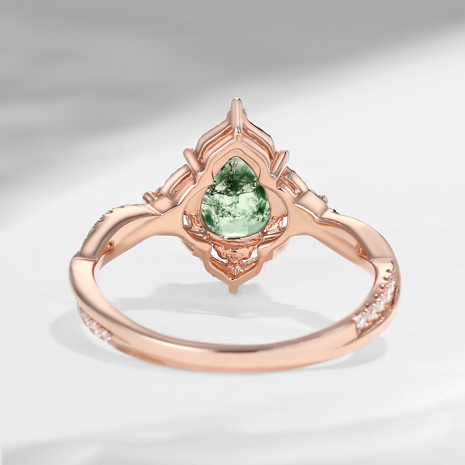 Vintage Style Pear Cut Moss Agate Infinity Engagement Ring