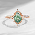 Vintage Style Infinity Moss Agate Engagement Ring Nature Inspired Antique Gift Green Ring