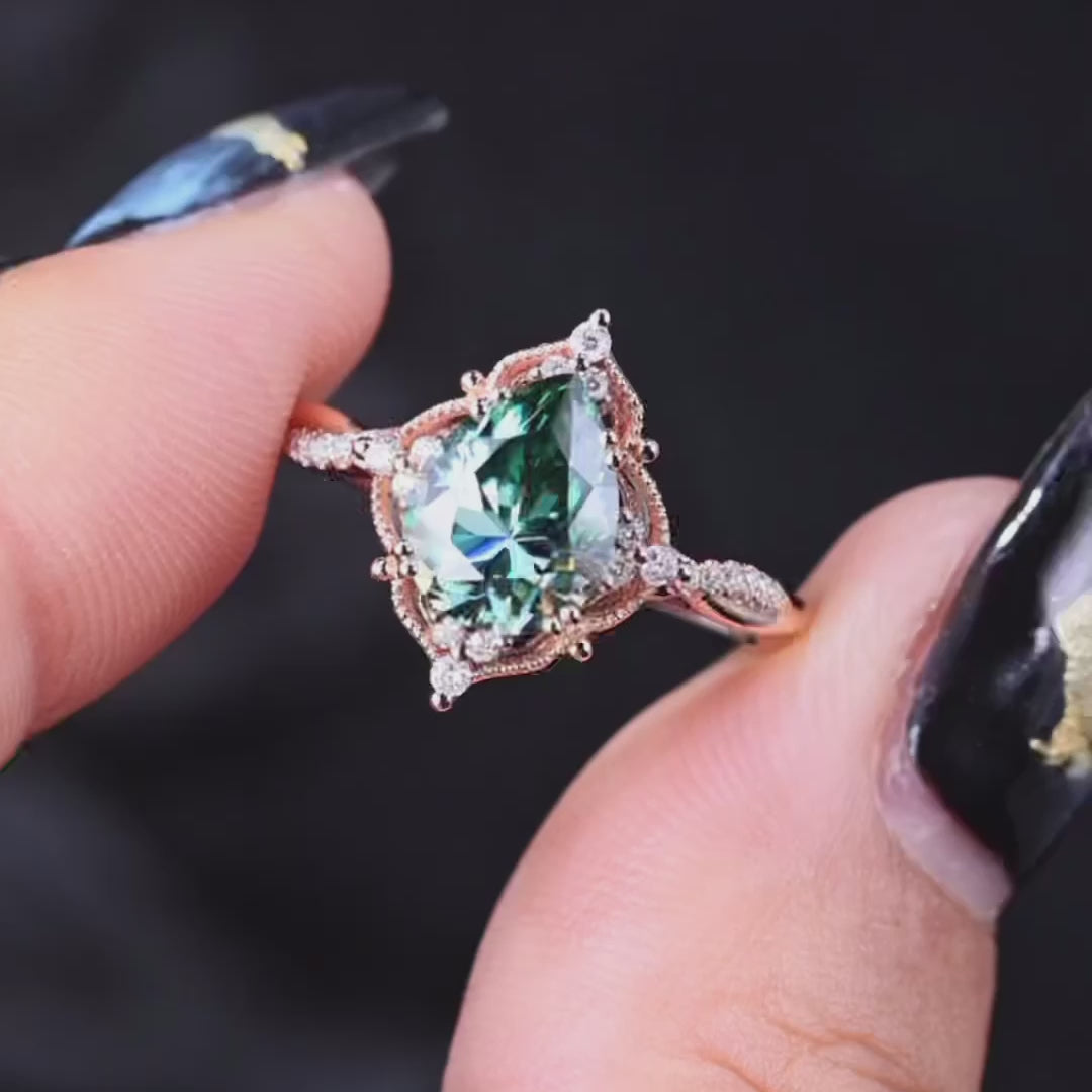 Vintage Style Infinity Teal Blue Green Moissanite Engagement Ring Nature Inspired Antique Gift Green Ring